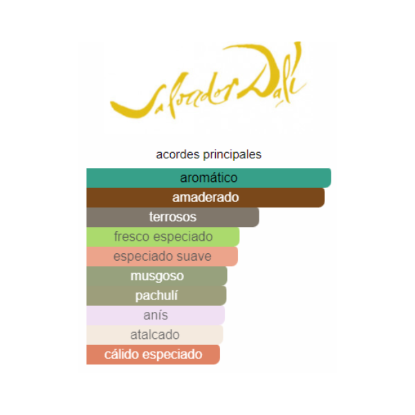 Salvador Dali Pour Homme de Salvador Dali es una fragancia de la familia olfativa Ámbar Fougère para Hombres. Salvador Dali Pour Homme se lanzó en 1987. La Nariz detrás de esta fragrancia es Thierry Wasser. Las Notas de Salida son anís, esclarea, lavanda, estragón, albahaca, bergamota, naranja tangerina y limón (lima ácida); las Notas de Corazón son geranio, jazmín, heliotropo y lirio de los valles (muguete); las Notas de Fondo son musgo de roble, pachulí, sándalo, vetiver, ámbar, cedro y vainilla.