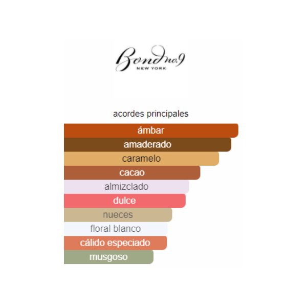 Las Notas de Salida son cacao y avellana; las Notas de Corazón son cedro y jazmín sambac (sampaguita); las Notas de Fondo son ambroxan, caramelo y musgo.